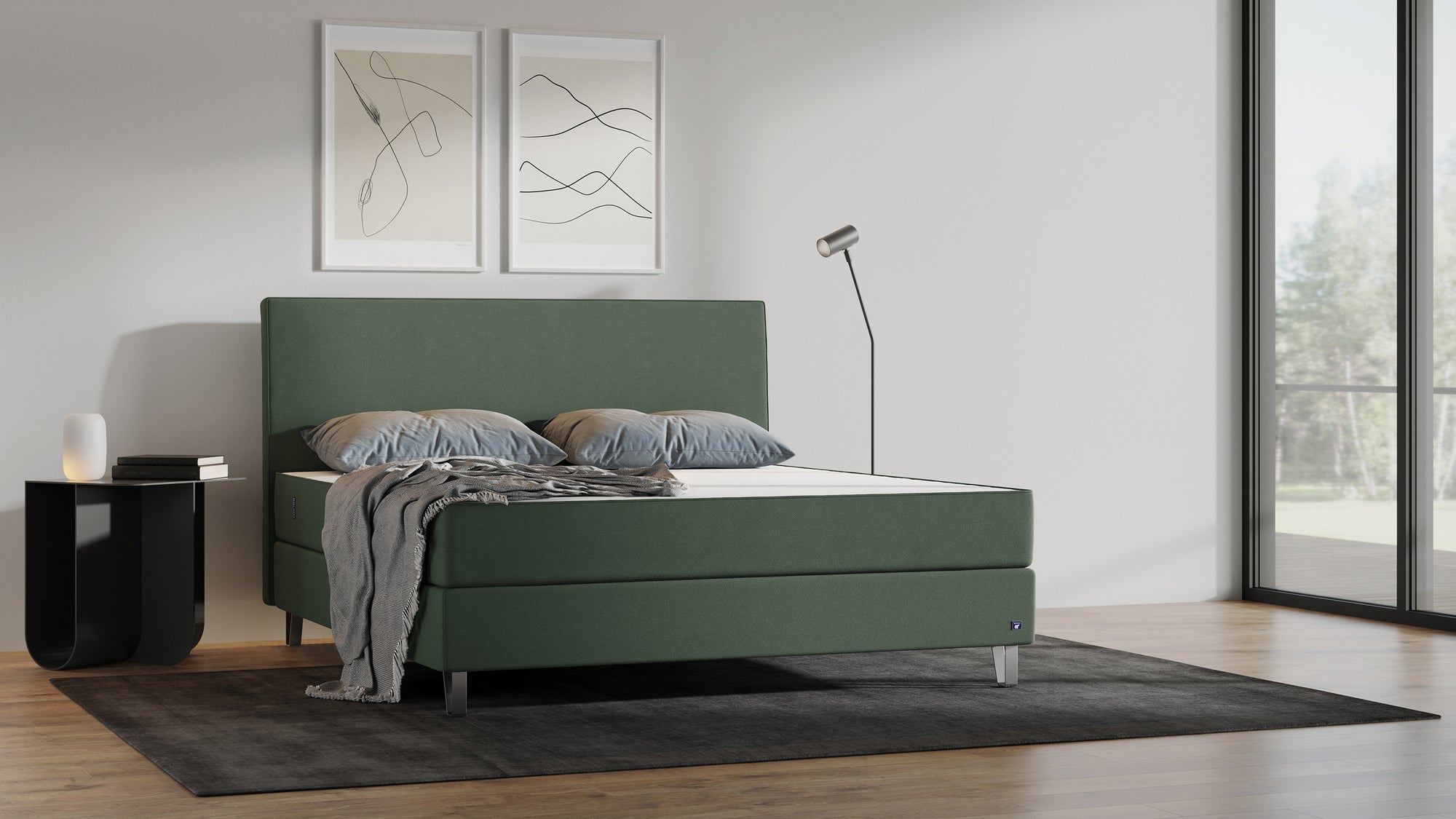 Unser Boxspringbett Premium verkörpert höchste Qualität und elegantes Design. In Europa aus langlebigem Massivholz und hochwertigen Taschenfedern gefertigt, bietet es ein einzigartiges Schlaferlebnis.ing description