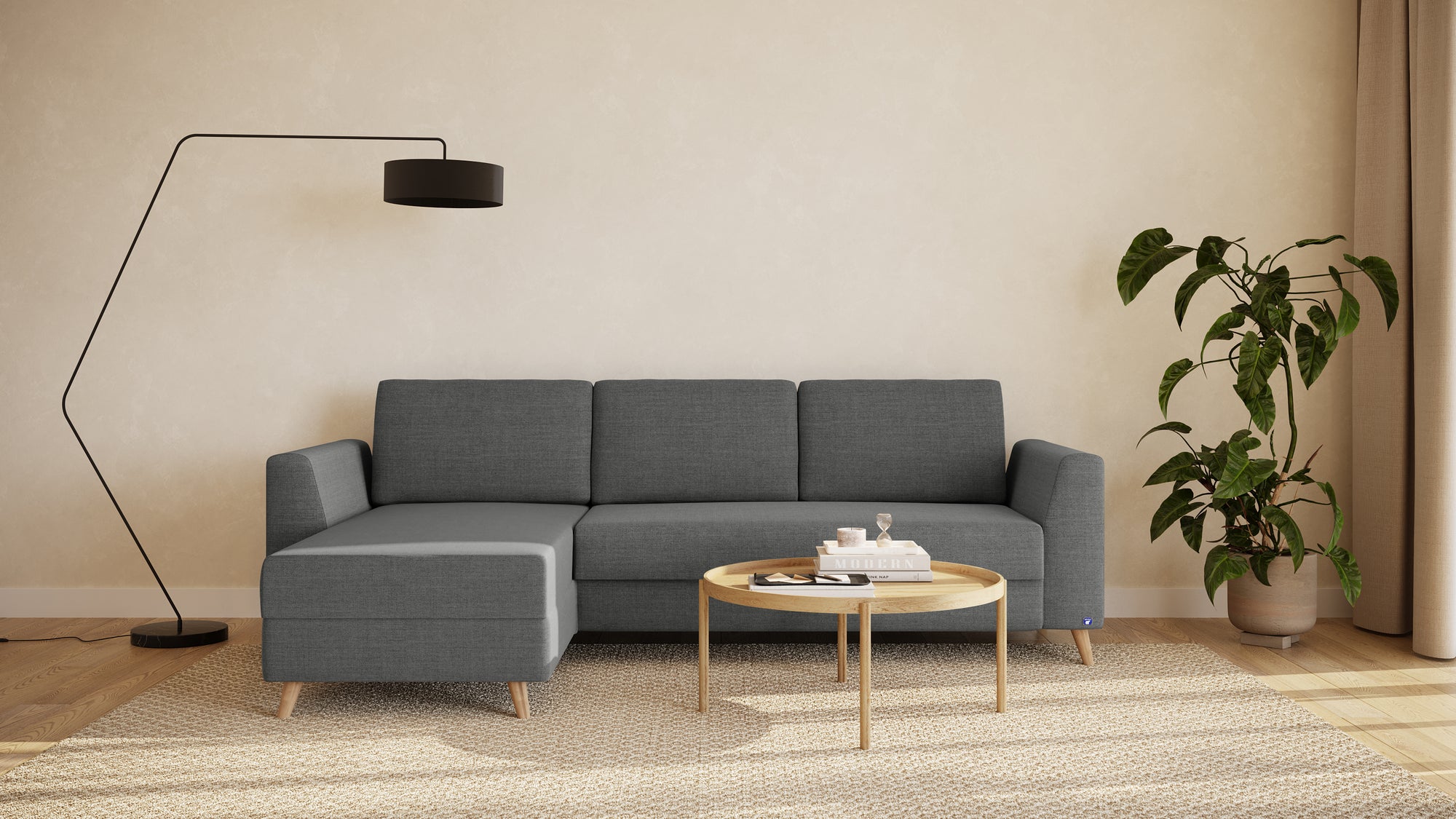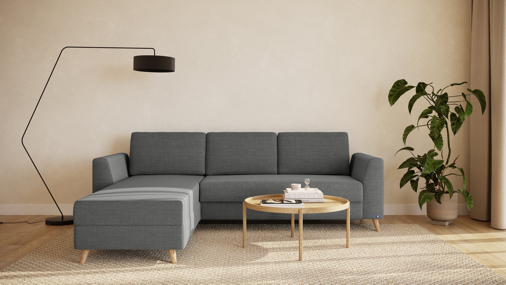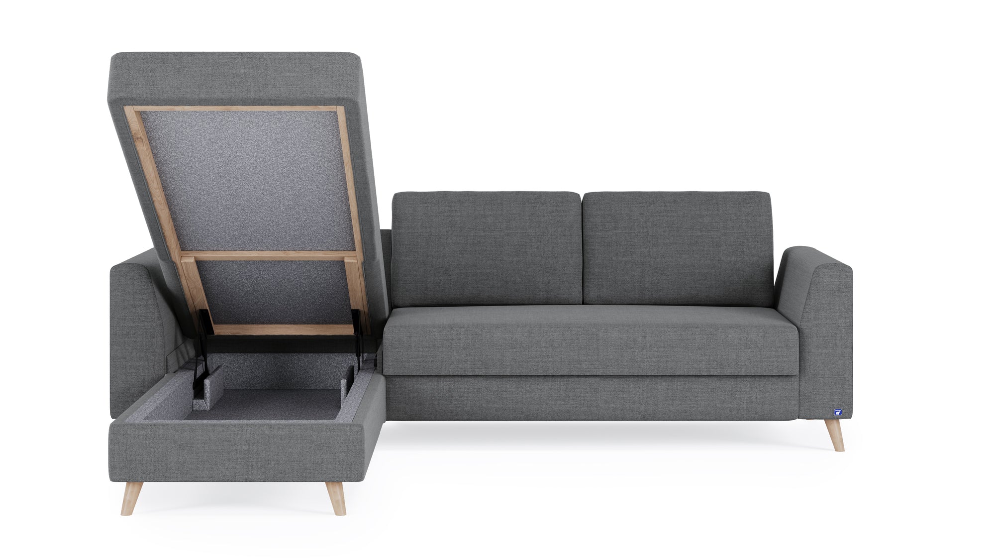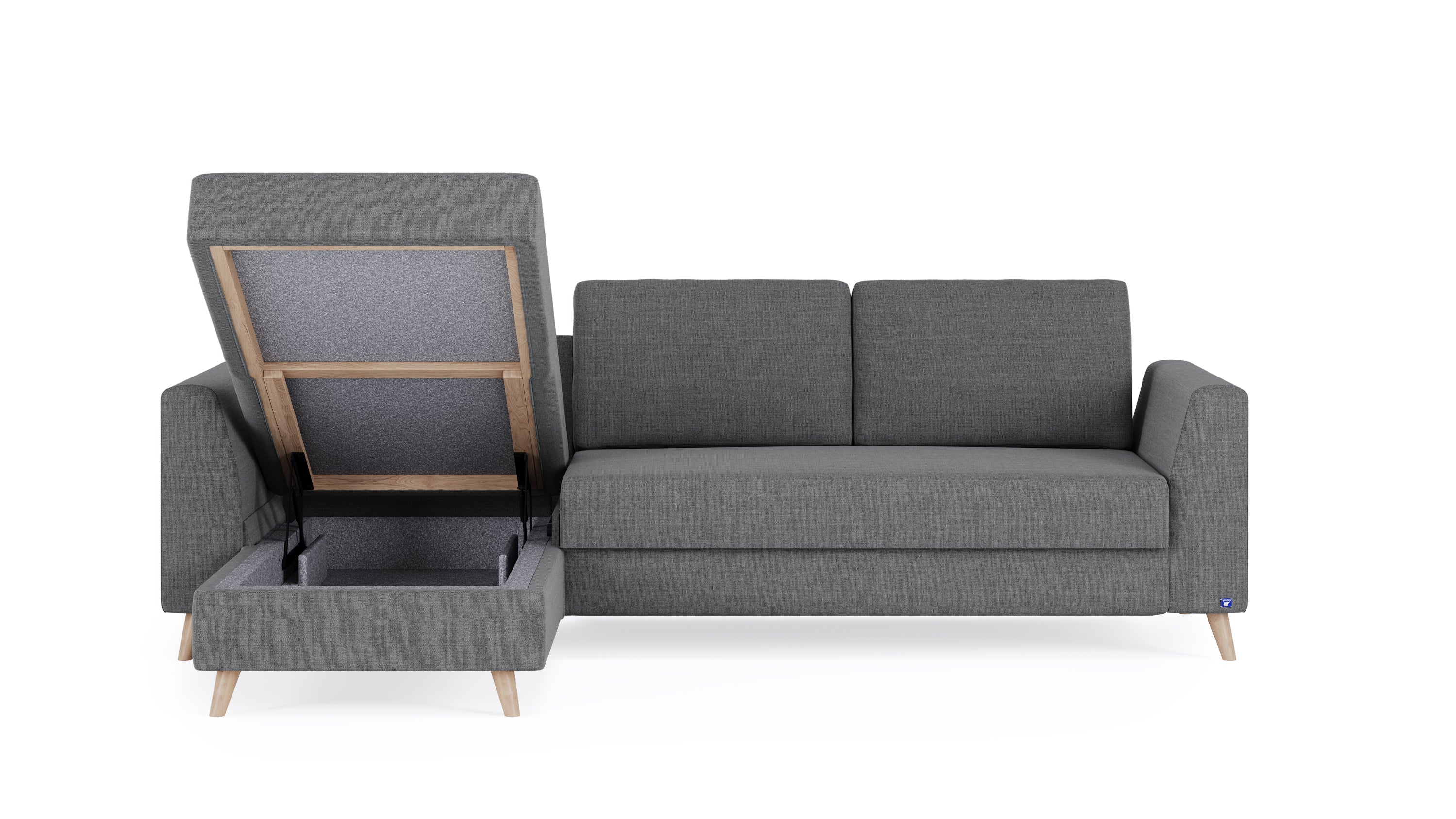 Der Rahmen des Ecksofas besteht aus robustem Massivholz. Dadurch garantieren wir langlebige Stabilität und Schonung der Ressourcen.