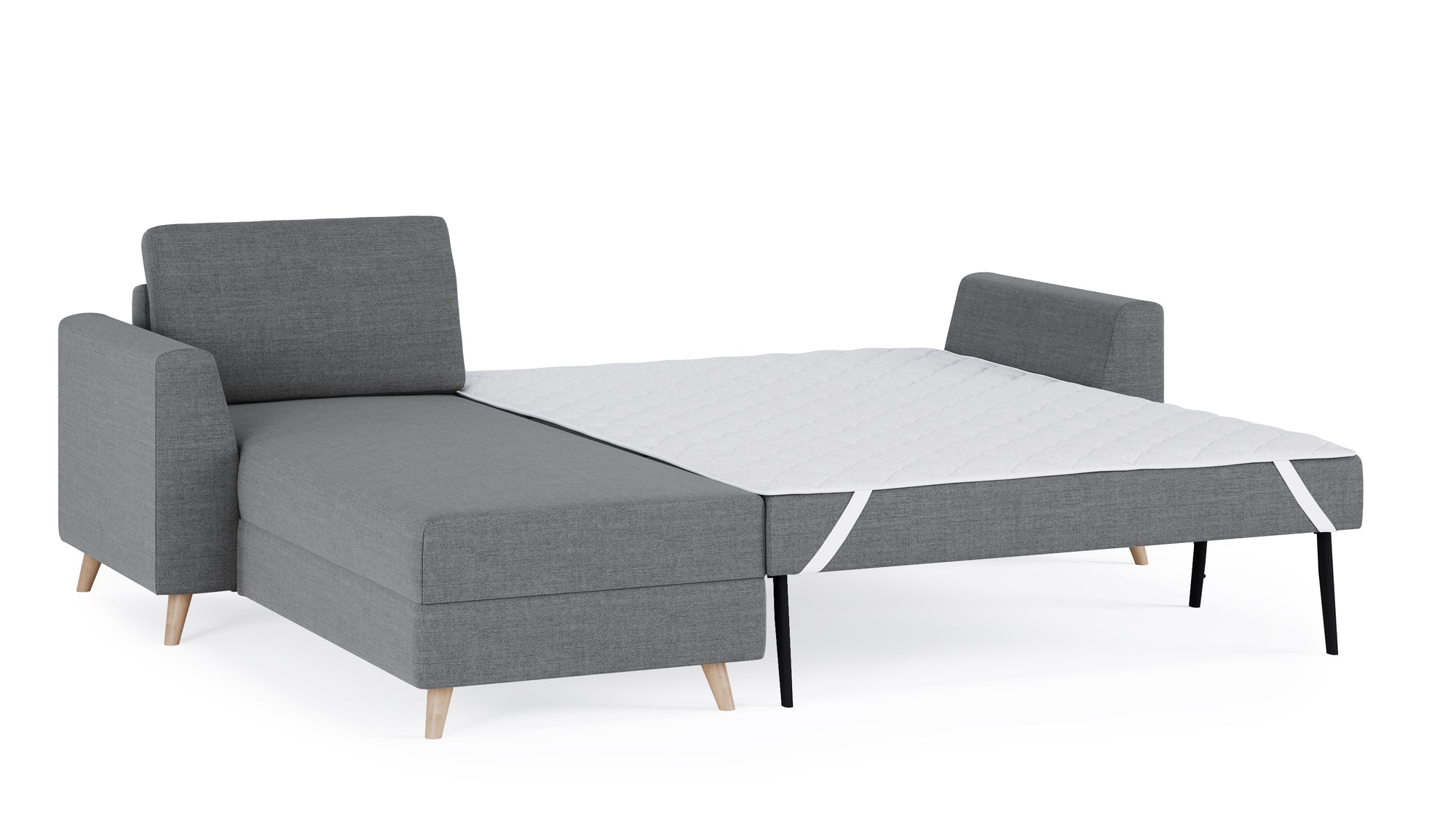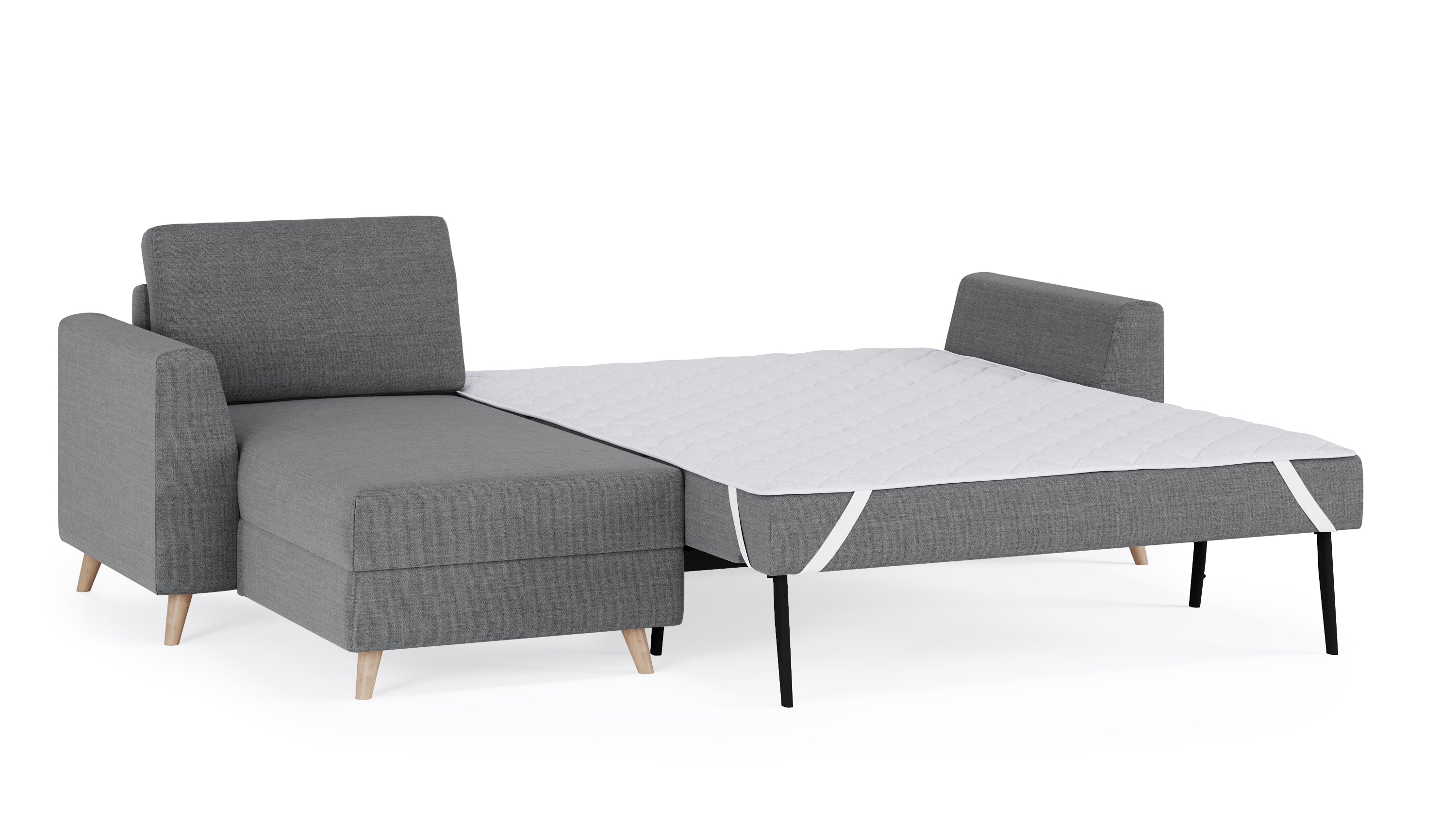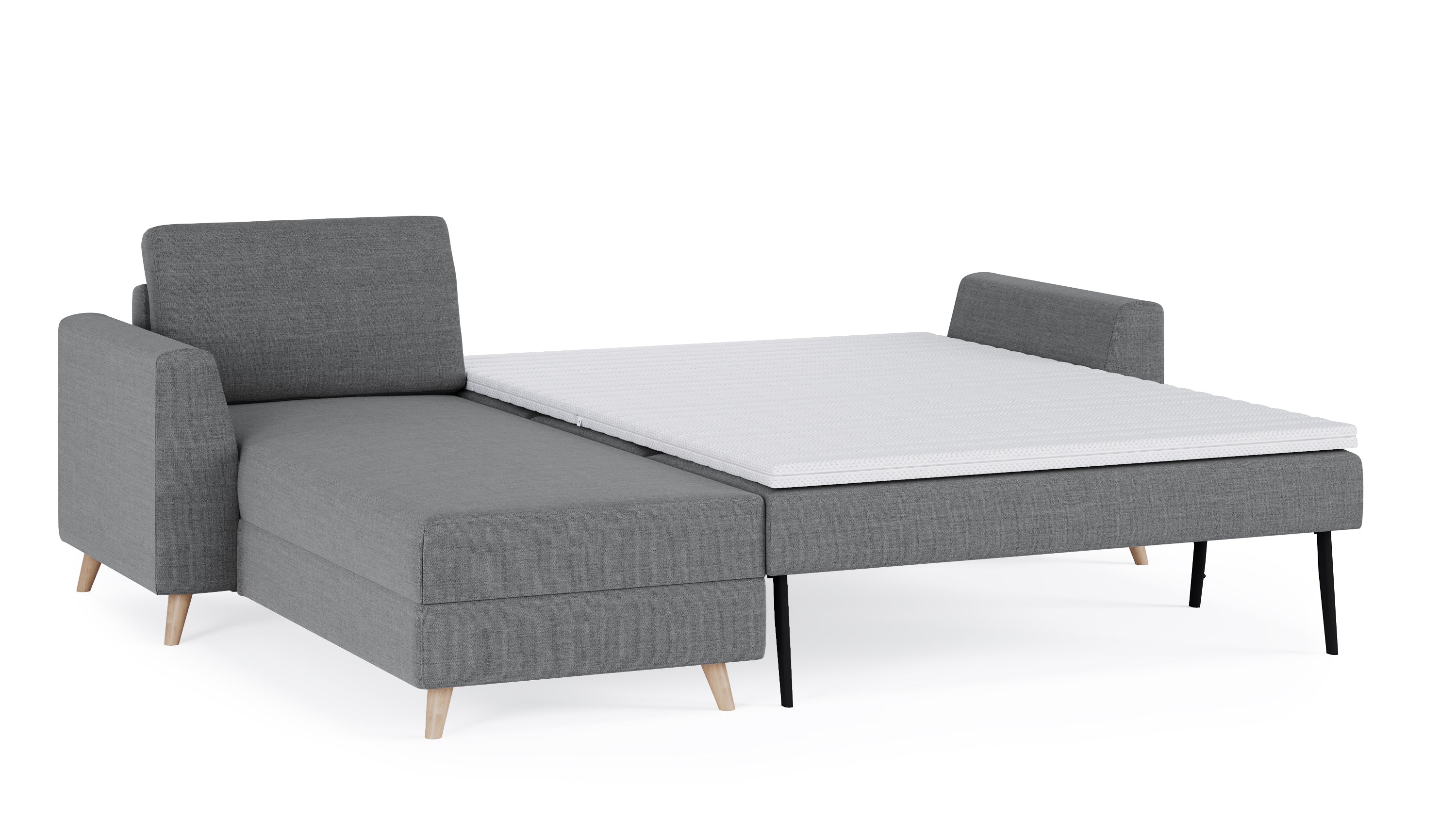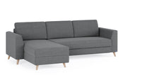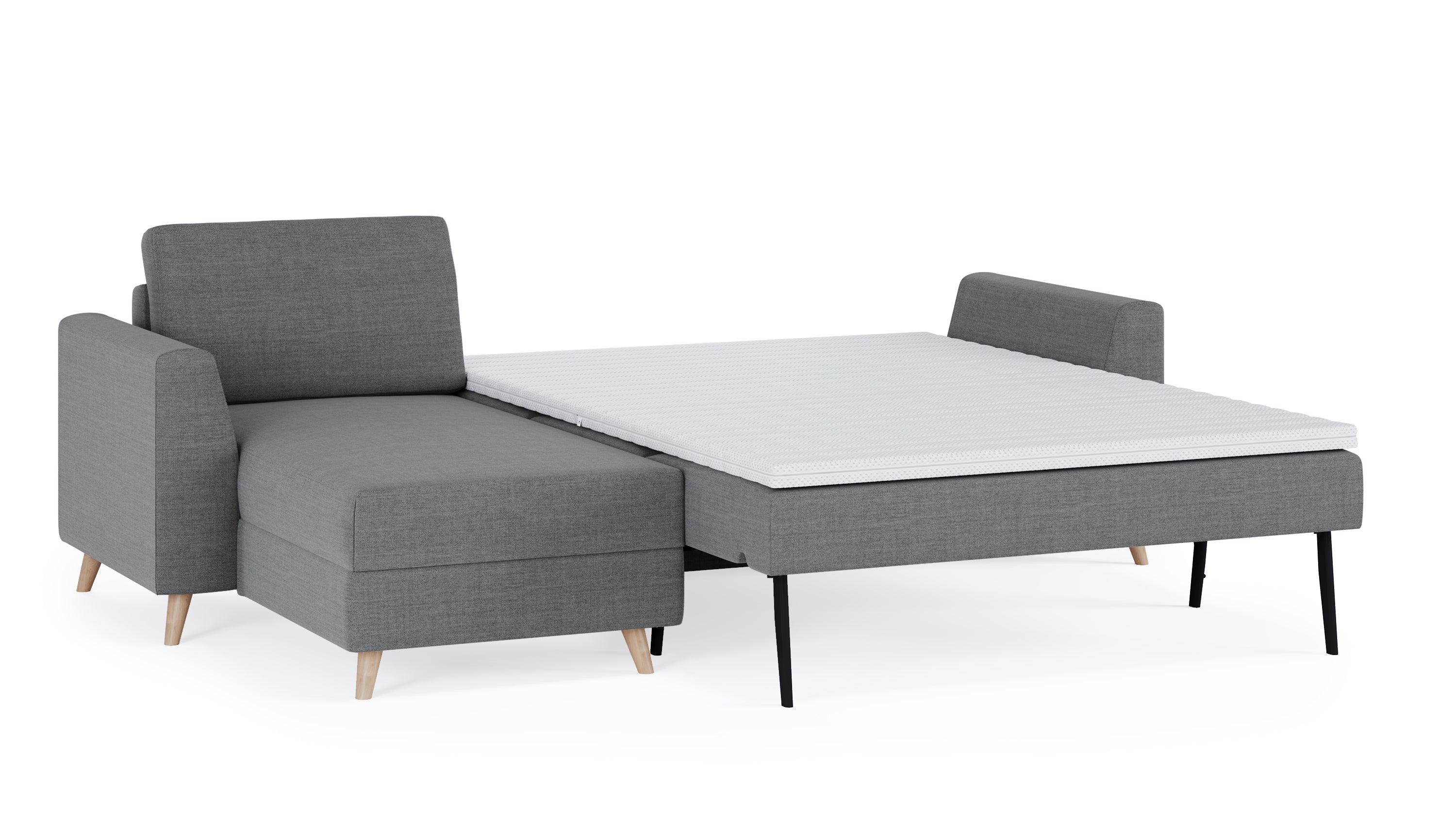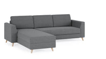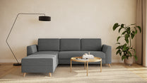 Das Schlafsofa mit Recamiere bietet extra Komfort, schenkt praktischen Stauraum und ist individuell gestaltbar: Das Eckmodul lässt sich einfach auf der rechten und linken Seite anbringen und mit dem 2-Sitzer und 3-Sitzer sowie unseren Armlehnen-Varianten Kubus, Klassik und Schmal kombinieren.