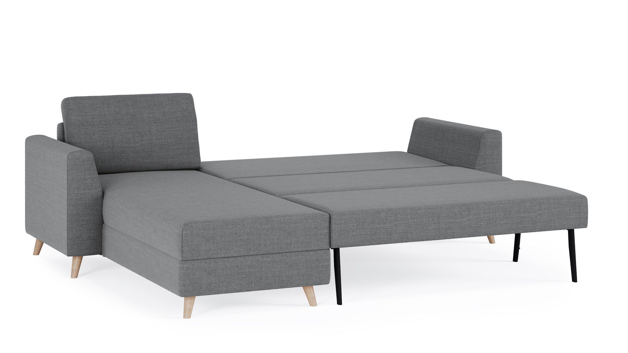 Dank des leichtgängigen und unkomplizierten Klappmechanismus und der integrierten Zuglasche, kann das Auf- und Einklappen von nur einer Person in rund 15 Sekunden erledigt werden. Die beiden Sitzkissen können im ausgeklappten Zustand entweder im Sofa untergebracht oder als Rückenlehne verwendet werden.