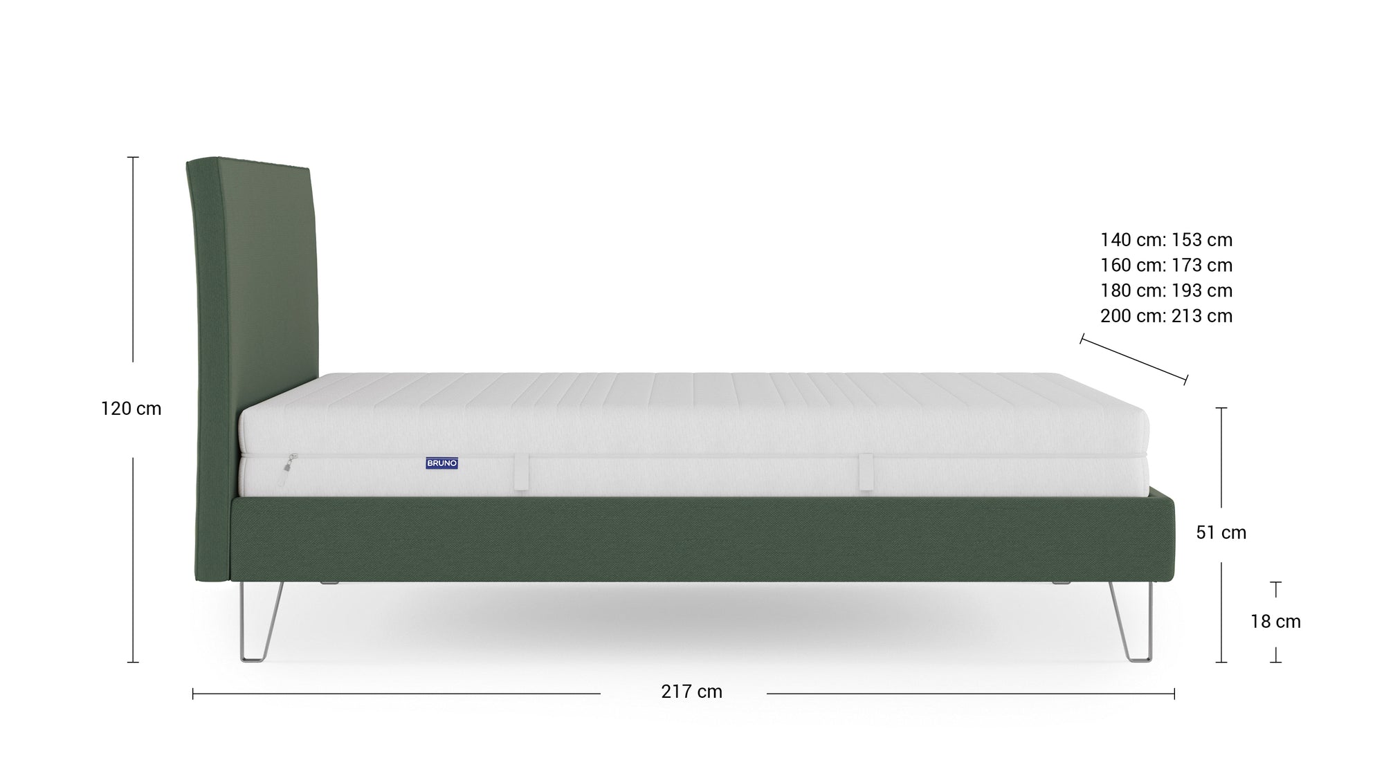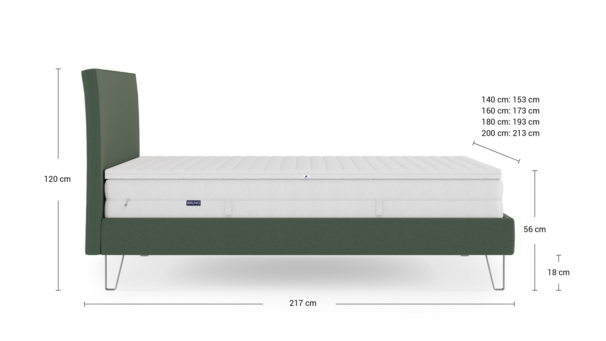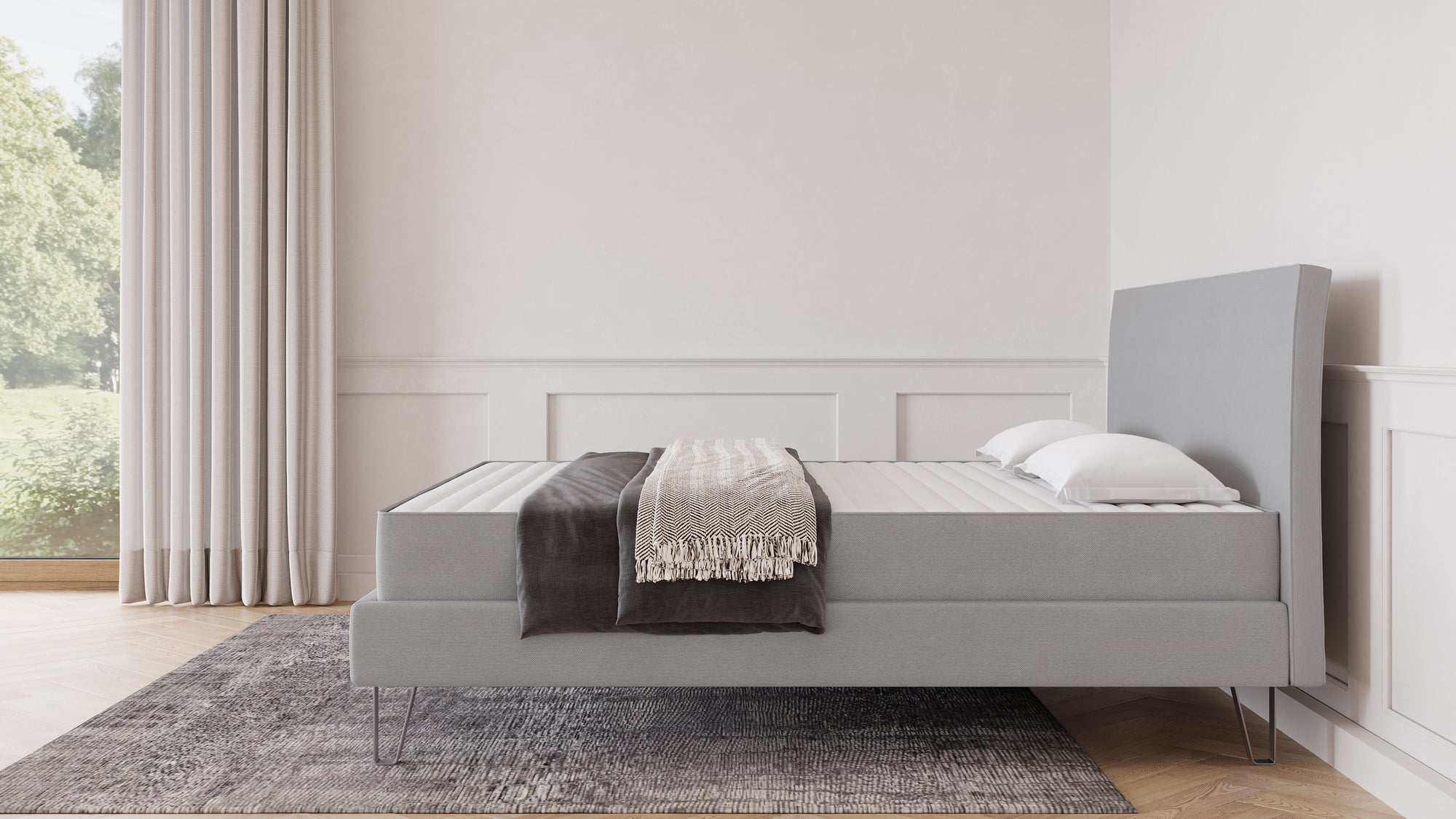 Wählen Sie zwischen zwei Matratzenvarianten, drei verschiedenen Einstiegshöhen und fünf zeitlosen Stofffarben. Optional kann das Bett mit einem Topper ergänzt werden – für ein noch weicheres Liegegefühl. So entsteht ein Schlafplatz, der genau zu Ihren Bedürfnissen passt.