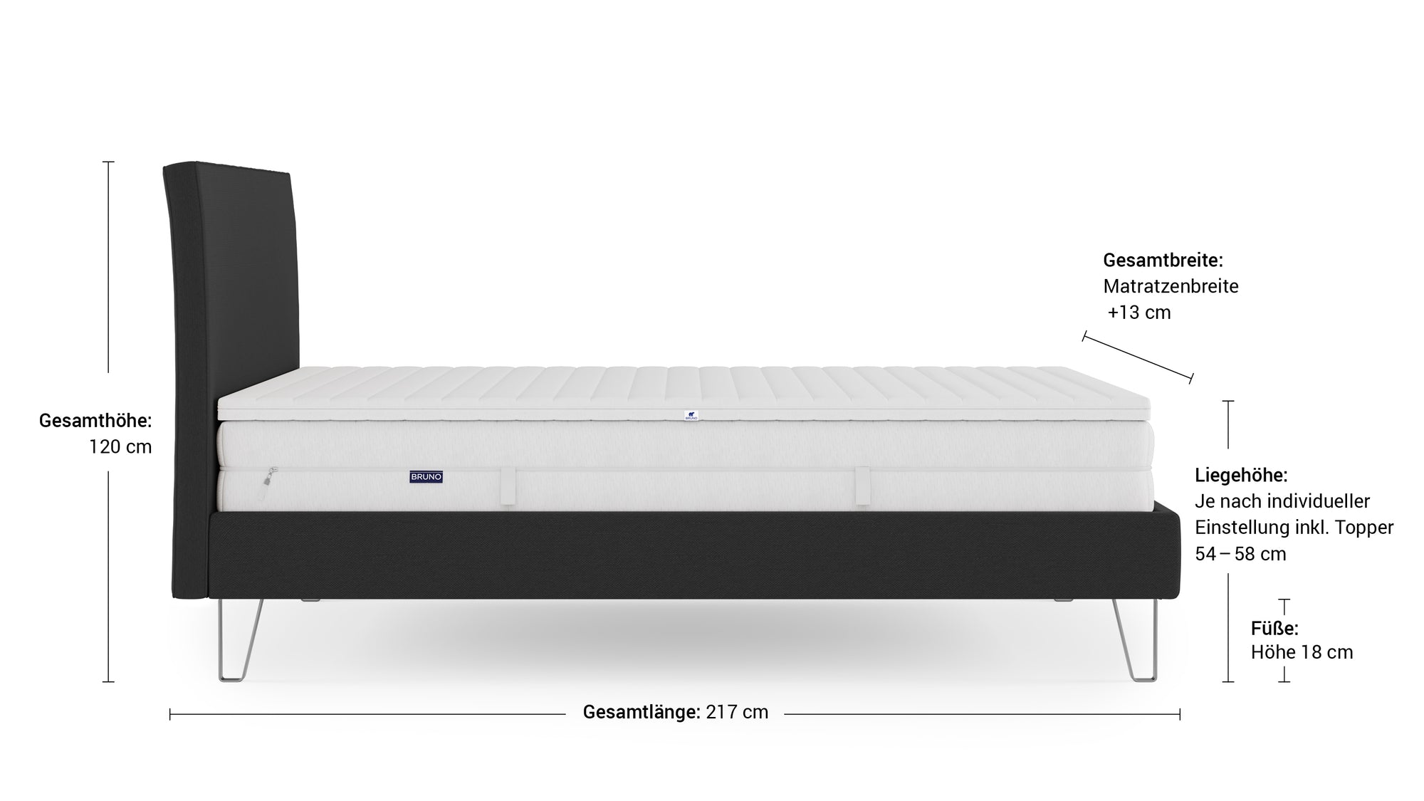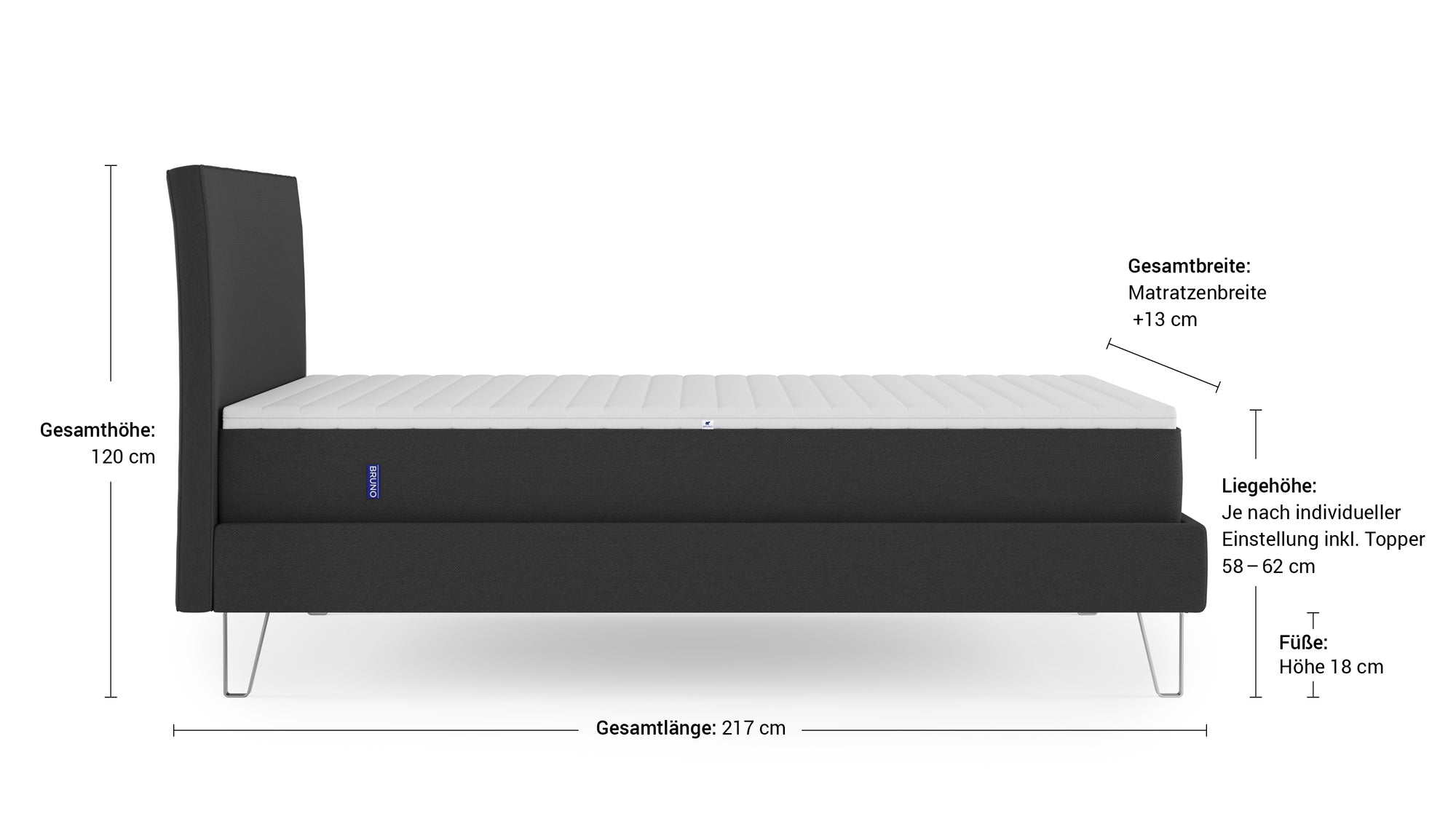Technische daten und Versandinfos von das Bruno Boxspringbett