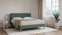Die sorgfältig verarbeitete Polsterung und die strapazierfähigen Stoffe verleihen dem Bett eine wertige Haptik. Erhältlich in den Bruno Farben: Anthrazit, Hellgrau, Grün, Blau und Beige.