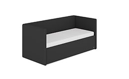 De bekleding van het Bruno logeerbed is gemaakt van stevige meubelstoffen die weinig onderhoud nodig hebben. Kleine vlekken kun je verwijderen met een zachte doek en een beetje gedestilleerd water. De matrashoes is afneembaar en wasbaar op 60°C in de wasmachine.