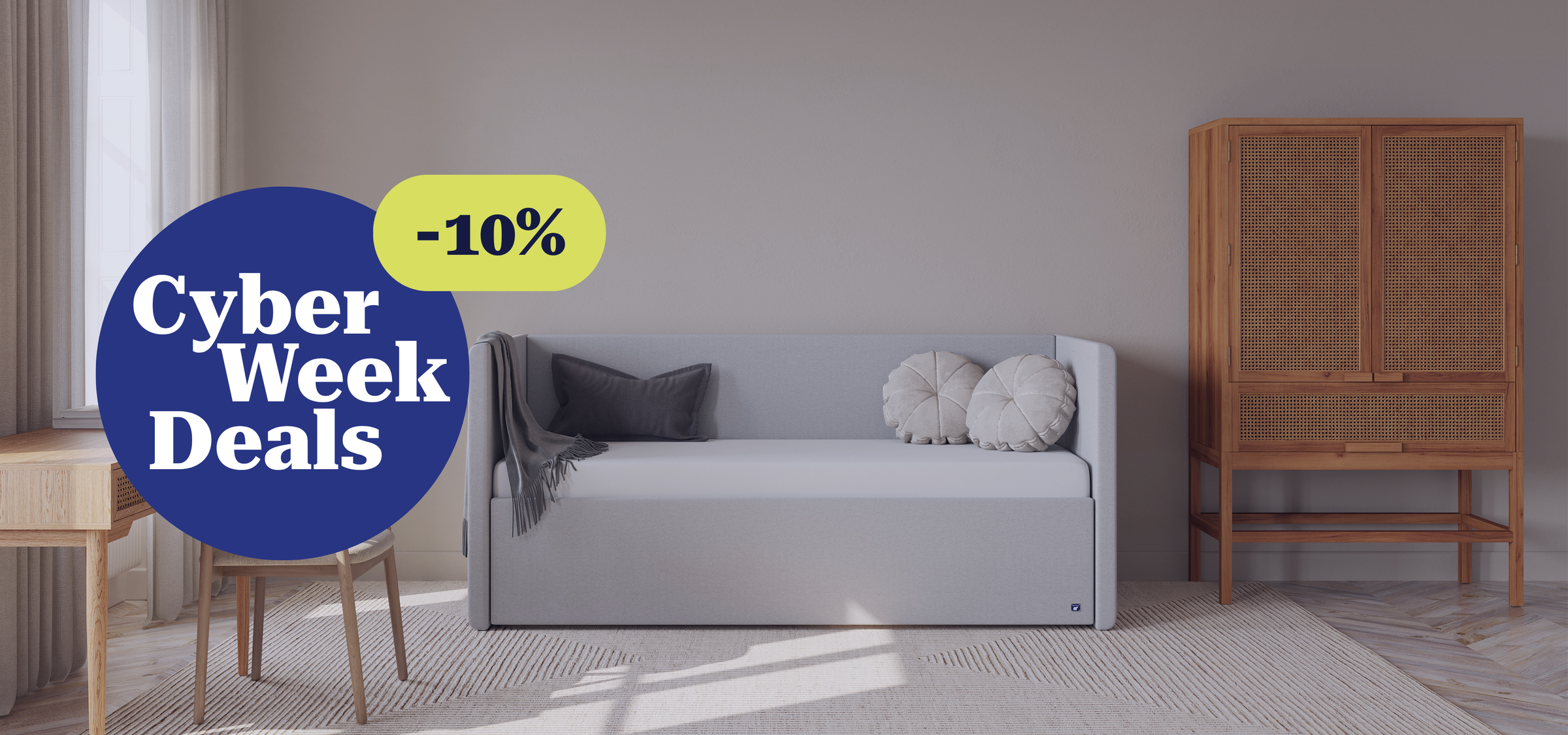 Het Bruno logeerbed is de perfecte allrounder: overdag een comfortabele sofa, 's nachts een heerlijk bed – en dat alles met handige opbergruimte!