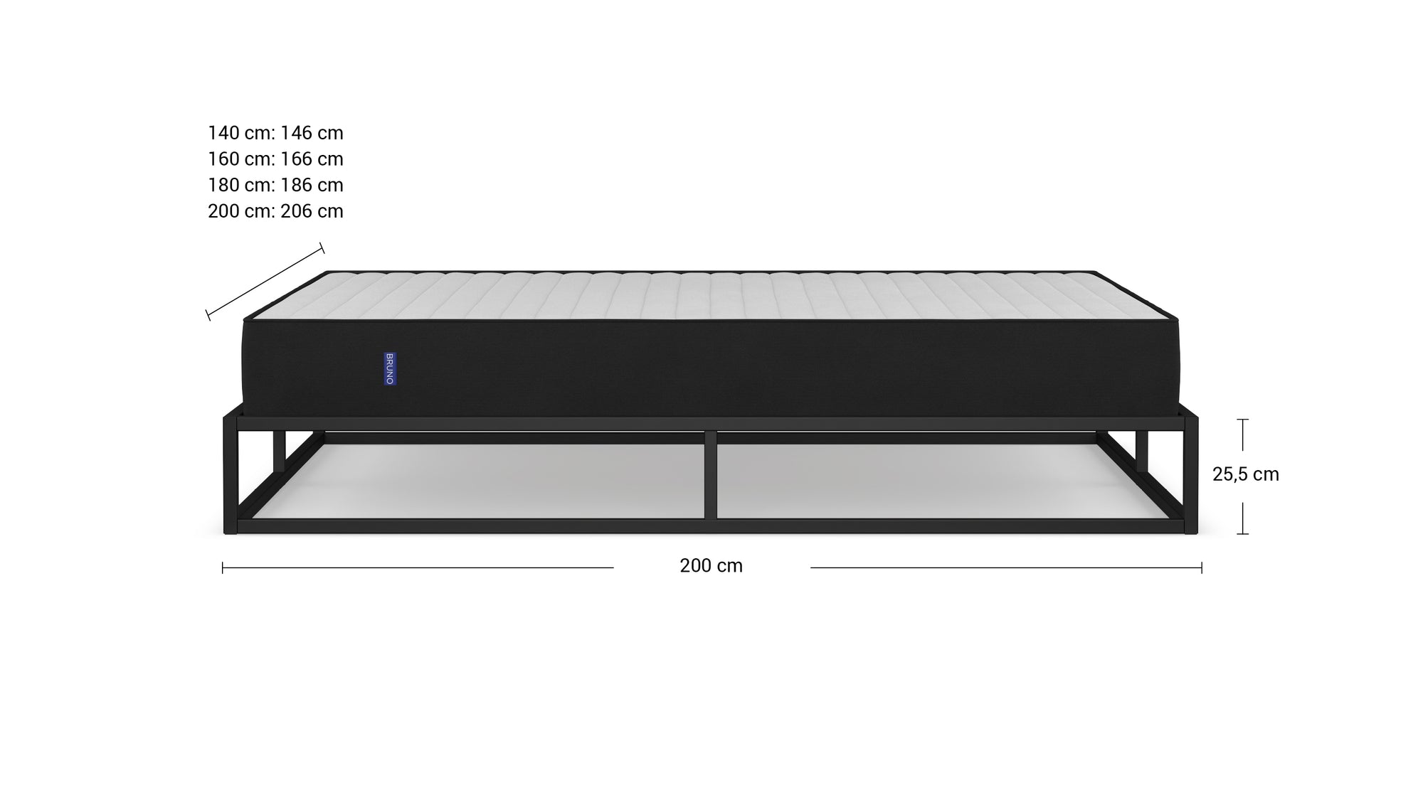 Het metalen Bruno bed overtuigt door zijn strakke en minimalistische design. Dankzij de constructie van robuust kwaliteitsstaal is het bijzonder stabiel. De zwarte poedercoating zorgt voor een elegant uiterlijk.