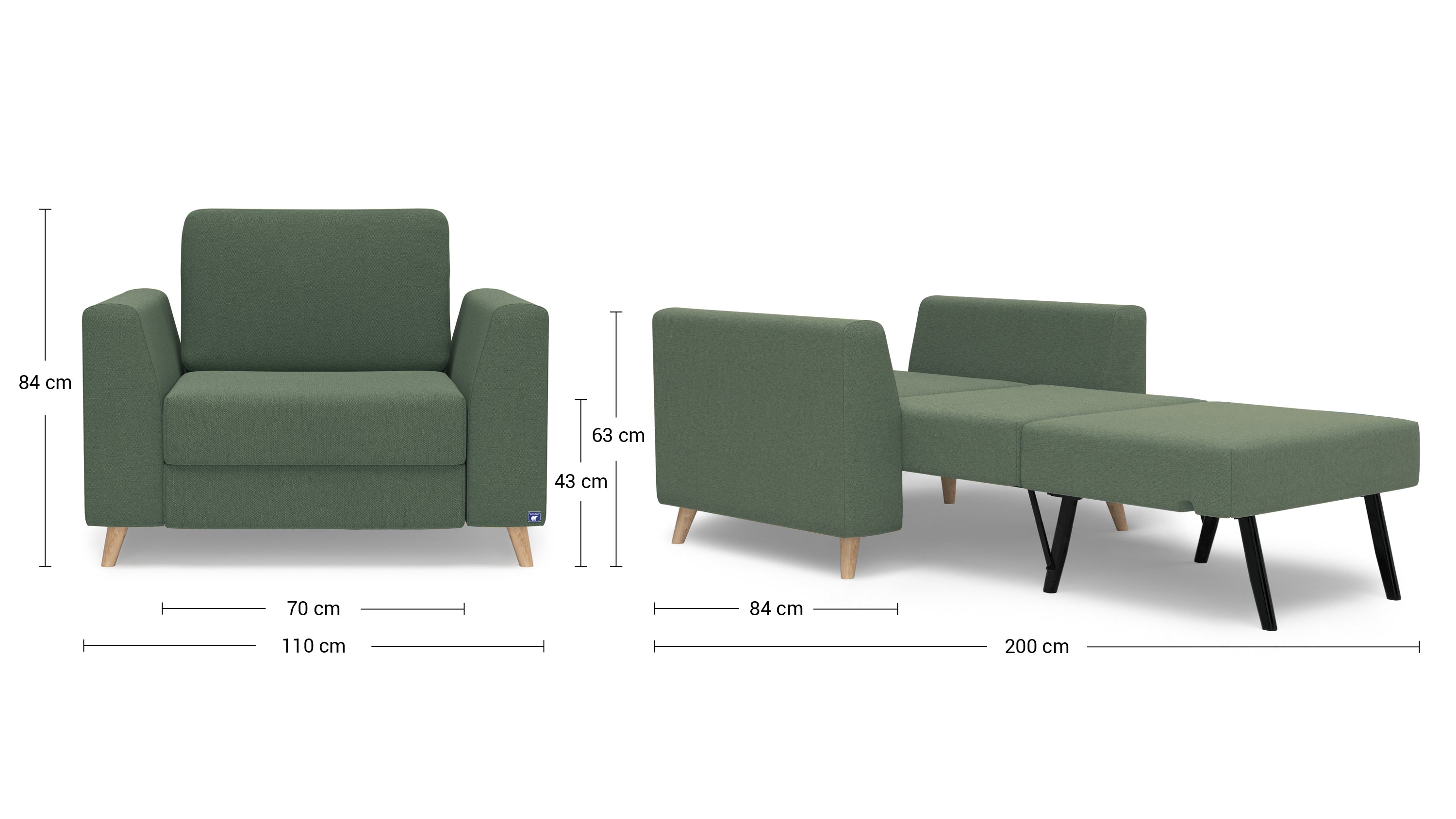 Dankzij het soepele en ongecompliceerde uitklapmechanisme kan de slaapstoel in slechts 15 seconden worden uitgeklapt tot een comfortabel logeerbed, dat met een breedte van 70 cm voldoende ruimte biedt voor één persoon.