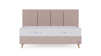 Voor de Surpreme boxspring zijn exclusieve designelementen ontworpen: drie unieke hoofdborden , de elegante structuurstof Aurora Premium en twee stijlvolle houten poten geven het bed zijn onmiskenbare elegantie.