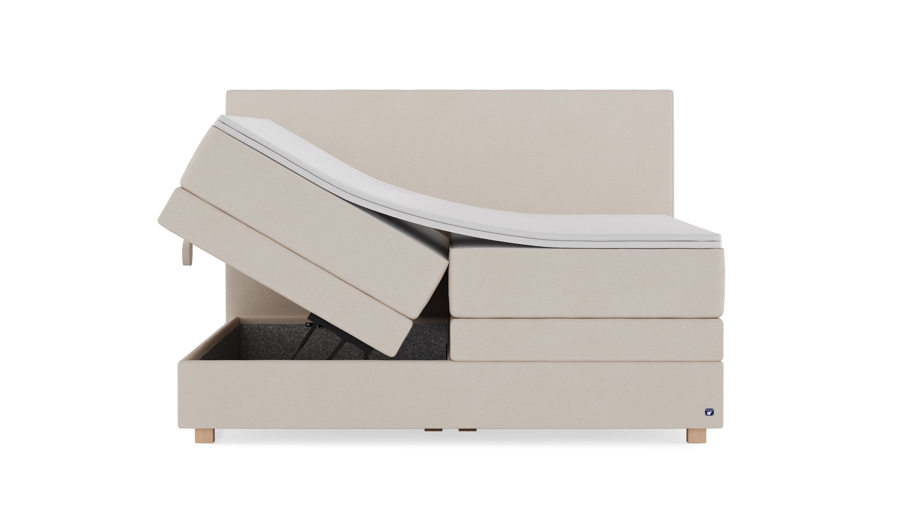 De boxspring met opbergruimte kan binnen vier seconden aan beide kanten afzonderlijk worden geopend.