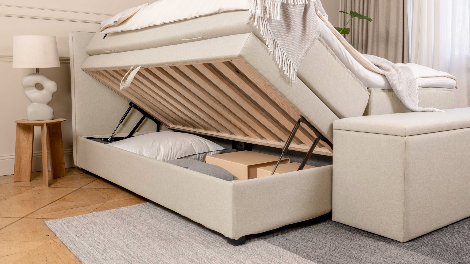 De Bruno boxspring met opbergruimte combineert functionaliteit en comfort